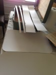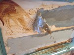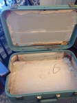 There were some gaps where the side pieces met the larger main surface area. We needed one cohesive surface which will allow pressing the lining into the edges of the suitcase. Caulk! Fill the gaps with caulk and smooth into the edges. Let dry over night.